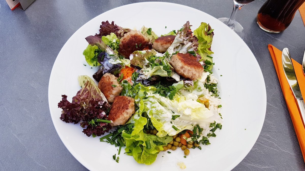 Cafe Zwischen boasts a simple yet satisfying menu that excels in delivering local favorites. The daily special often features an enticing deep plate filled with fresh, artfully composed salads—a treat for both the eyes and the palate. Complementing this colorful array, you can savor the succulent braised pork served with knödel, a classic German potato dish paired with a rich brown sauce. Each bite is not just a meal; it's an experience that resonates with the heart and soul of German cuisine.